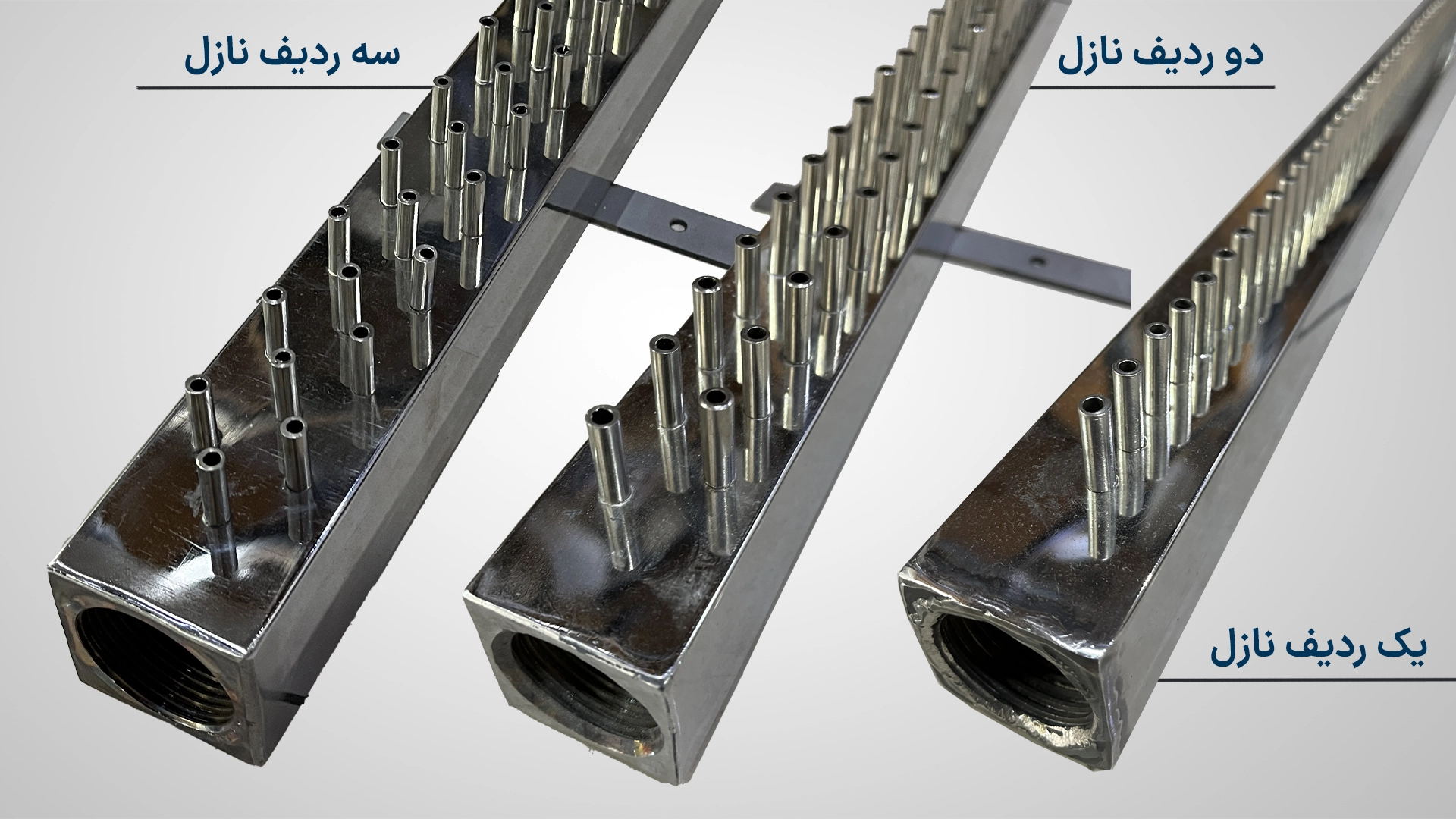 تراکم نازل استاندارد: چیدمان بهینه نازلها در هر متر طول برای ایجاد تراکم کافی و جلوهای زیبا، بدون هزینهزایی اضافی.